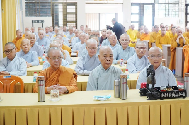Phát biểu tại buổi thăm, Hòa thượng Thích Minh Thiện thay mặt đoàn đã chuyển lời của chư tôn giáo phẩm lãnh đạo Giáo hội thăm hỏi đến chư tôn đức Tăng Ni tỉnh Bà Rịa - Vũng Tàu.