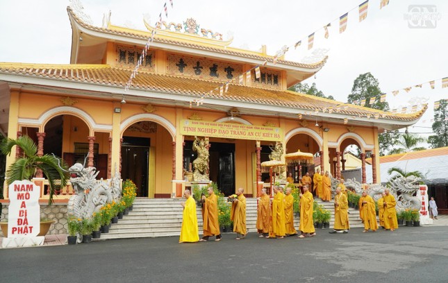 Tiếp đoàn có Hòa thượng Danh Đổng, Ủy viên Thường trực Hội đồng Trị sự, Trưởng ban Trị sự GHPGVN tỉnh Kiên Giang; Ban Thường trực Ban Trị sự GHPGVN tỉnh, Tăng Ni các trú xứ và gần 1.000 Phật tử tham dự.