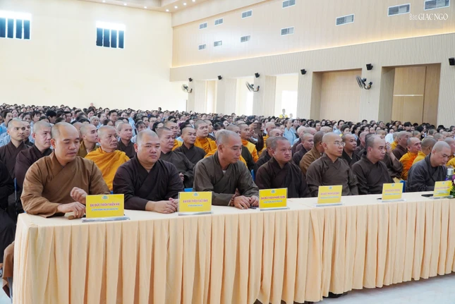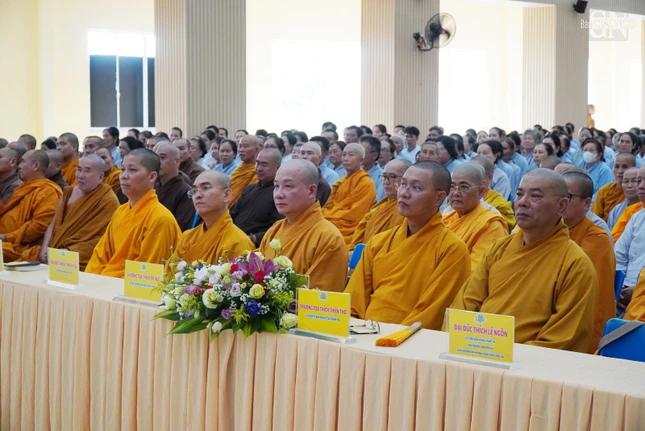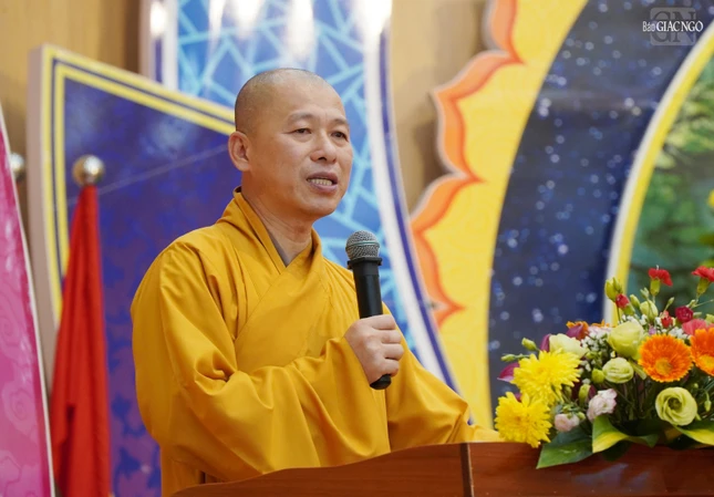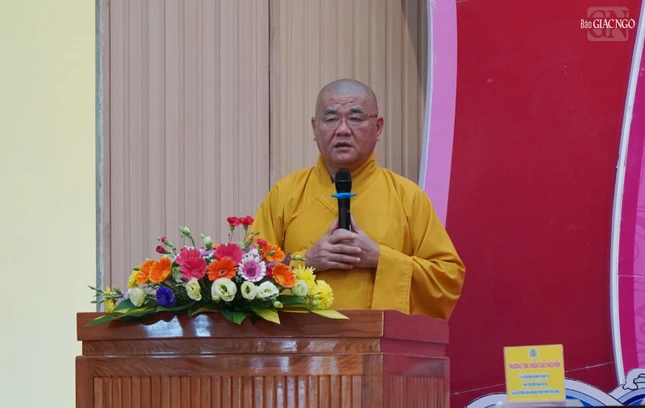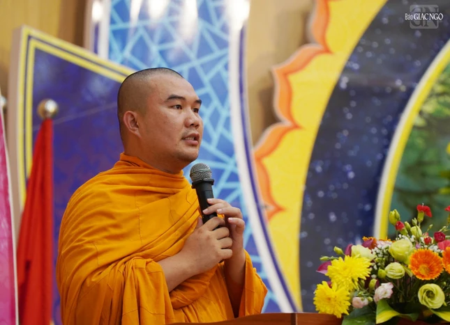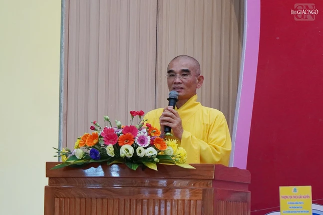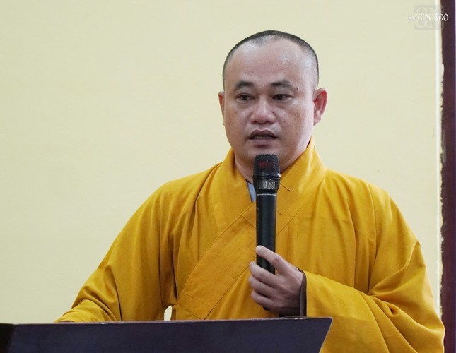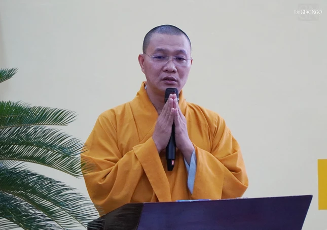 Thượng tọa Thích Minh Nhẫn, Ủy viên Thư ký Hội đồng Trị sự, Phó ban Thường trực Ban Trị sự GHPGVN tỉnh Kiên Giang đã phát biểu chào mừng và báo cáo sơ nét về an cư của tỉnh Kiên Giang.