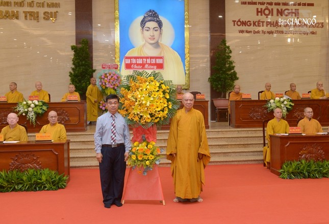 Hội nghị được xem video clip ghi nhận những hoạt động Phật sự năm 2023 của Ban Hoằng pháp tại hội nghị. Theo đó, sau khi Ban Hoằng pháp ra mắt nhân sự và có buổi họp với 128 giảng sư, trong đó, Giảng sư Ban Hoằng pháp TP.HCM có 55 vị, Giảng sư đoàn Ban Hoằng pháp Thành phố có 73 vị, được phân công thuyết giảng tại 269 đạo tràng, trong đó có 8 giảng đường trung tâm, 12 đạo tràng Bát Quan trai và 5 lớp giáo lý tu học hàng tuần, 244 đạo tràng tu học 1 tháng/ kỳ; tổ chức 2.918 buổi giảng Phật pháp tại các đạo tràng gồm 264 buổi giảng online.