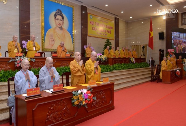 Phát biểu khai mạc, Hòa thượng Thích Nhựt Hỷ, Phó ban kiêm Trưởng ban Hoằng pháp GHPGVN TP.HCM, Trưởng ban Tổ chức Hội thi cho biết Ban Hoằng pháp GHPGVN TP.HCM được kế thừa sự nghiệp hoằng pháp của Đức Pháp chủ GHPGVN - Đại lão Hòa thượng Thích Trí Quảng, Hội thi diễn giảng cấp Thành phố lần này chính là tiếp nối thành tựu đó.