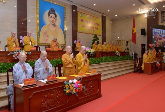 GNO - Sáng nay, 28-7, tại Trụ sở Ban Trị sự - Việt Nam Quốc Tự, diễn ra khai mạc Hội thi diễn giảng cấp Thành phố do Ban Hoằng pháp GHPGVN TP.HCM tổ chức, 28 thí sinh đạt điểm cao từ Hội thi diễn giảng cấp quận huyện TP.HCM, được tuyển chọn tham gia hội thi này.