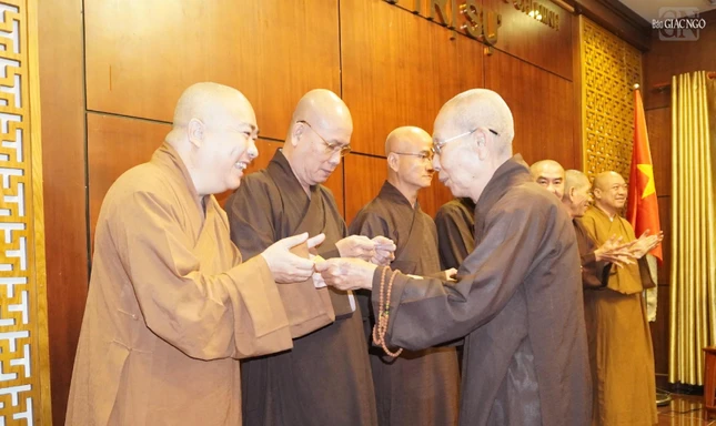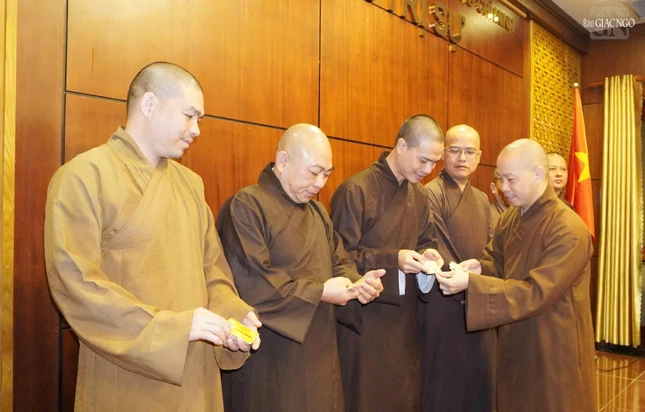 Tại buổi tổng kết, chư tôn đức cũng đã được phát thẻ thành viên Ban Hoằng pháp và Giảng sư đoàn |