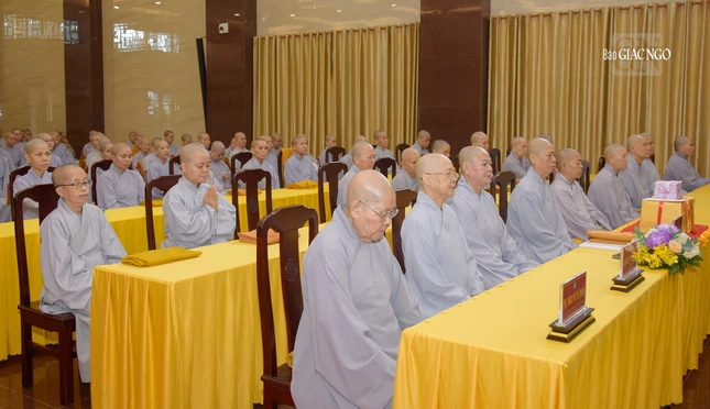 Dịp này, Hòa thượng Trưởng ban Hoằng pháp T.Ư thay mặt đoàn chúc chư tôn đức hành giả 3 tháng an cư viên mãn, thêm tuổi đạo cao quý. Hòa thượng cũng đã có lời sách tấn và chúc an lạc đến Phật tử ngoại hộ Chánh pháp và các chương trình hoạt động của Giáo hội.