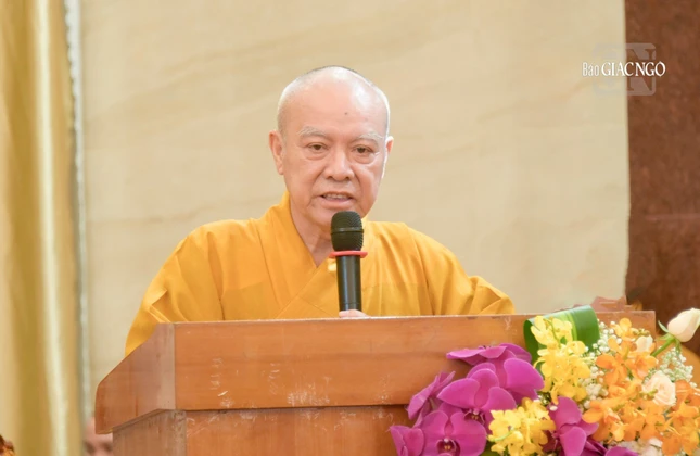 Phát biểu chào mừng, Hòa thượng Thích Lệ Trang bày tỏ niềm hoan hỷ khi Phật giáo TP.HCM được đón tiếp phái đoàn Ban Hoằng pháp T.Ư và Ban Kinh tế - Tài chánh T.Ư đến Việt Nam Quốc Tự thăm chư hành giả, cúng dường an cư và sách tấn Tăng Ni, Phật tử Thành phố phương Nam.