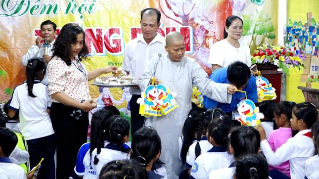 Năm nay, được sự trợ duyên từ hội từ thiện cô Tuyền Từ, Sư cô Thích nữ Tâm Ngộ đã trao đến cho các em nhỏ 600 phần quà. Trong đó, 510 phần trao tặng cho các em học sinh Trường Tiểu học Minh Hòa 3 và 90 phần cho các em nhỏ có hoàn cảnh khó khăn trên địa bàn H.Giồng Riềng, tổng trị giá các phần quà là 18 triệu đồng.