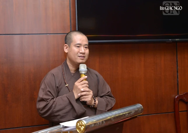 Thượng tọa Thích Thiện Quý phát biểu tại hội nghị |