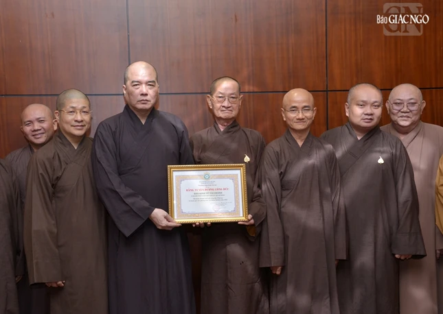 Dịp này, Ban Thường trực Ban Trị sự GHPGVN TP.HCM cũng tặng Bằng tuyên dương công đức đến tập thể Ban Kinh tế - Tài chính.