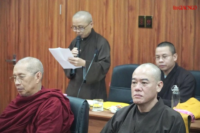 Thượng tọa Thích Hạnh Văn đọc báo cáo |
