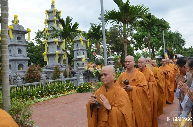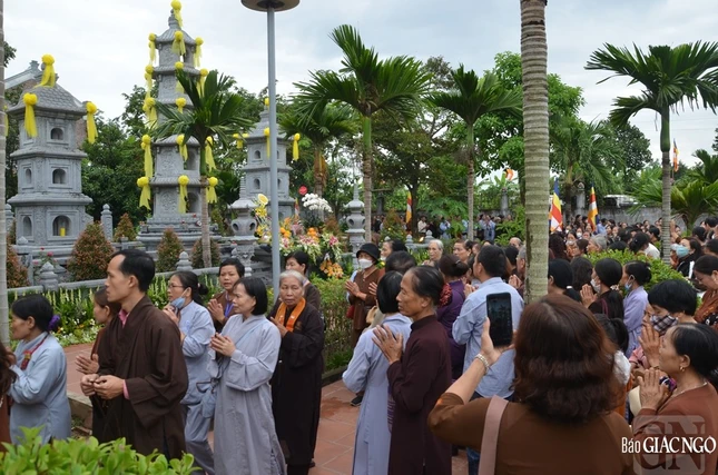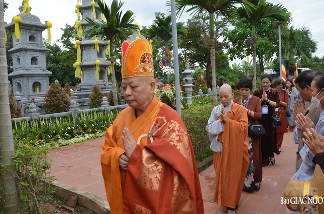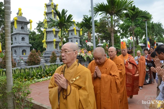 Sau lễ cung tiến Giác linh, Hòa thượng sám chủ cùng chư tôn đức Ban Nghi lễ đã vân tập trước bảo tháp đảnh lễ và nhiễu tháp để tưởng niệm công đức của bậc thạch trụ thiền gia.