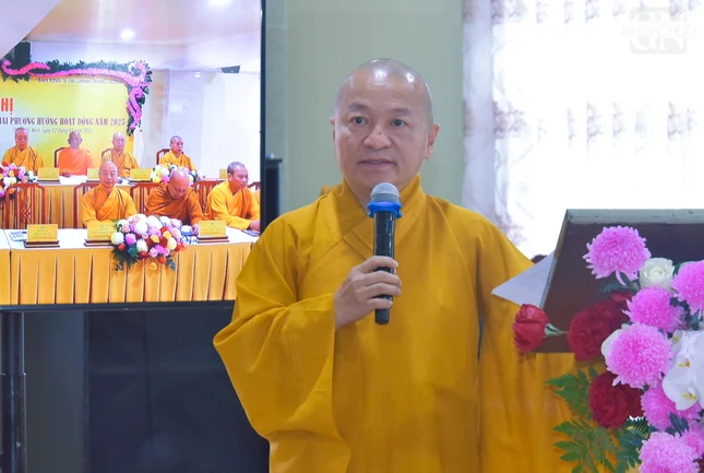 Phát biểu khai mạc, Thượng tọa Thích Đức Thiện nhấn mạnh năm 2025 sẽ diễn ra nhiều sự kiện trọng đại của đất nước và Giáo hội. Trong đó, việc tổ chức thành công Đại lễ Vesak Liên Hiệp Quốc tại cơ sở 2 (xã Lê Minh Xuân, H.Bình Chánh) - Học viện Phật giáo VN tại TP.HCM là nhiệm vụ trọng tâm của Ban Phật giáo Quốc tế T.Ư và Ban Kinh tế - Tài chính T.Ư.