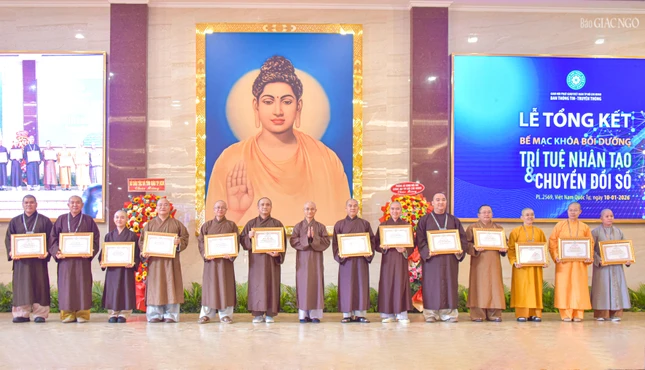 Buổi lễ tổng kết Phật sự năm 2025, bế mạc Khóa bồi dưỡng Trí Tuệ nhân tạo và chuyển đổi số do Ban Thông tin - Truyền thông Phật giáo TP.HCM tổ chức kết thúc sau lời cảm tạ của Thượng tọa Thích Trí Định, Phó Thư ký Ban Trị sự, Phó Thường trực Ban Thông tin - Truyền thông GHPGVN TP.HCM.