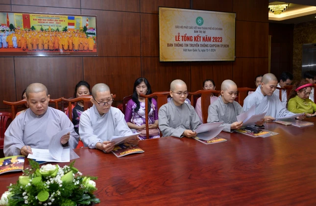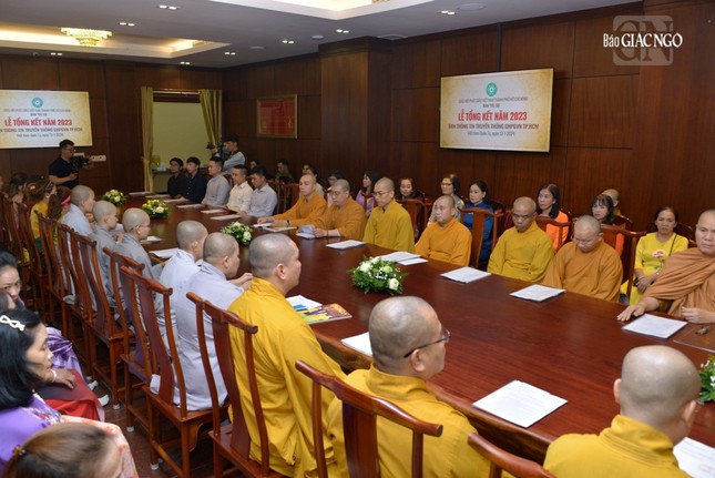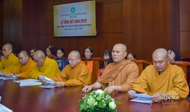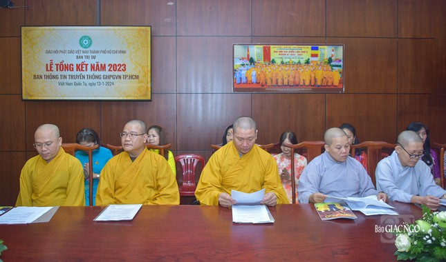 Báo cáo tại hội nghị, Đại đức Thích Hoằng Tâm, Phó Thư ký kiêm Chánh Văn phòng Ban Thông tin - Truyền thông cho biết trong năm 2023, Ban đã thực hiện nhiều hoạt động hành chánh văn phòng, chuyên môn đạt hiệu quả, nổi bật như: Nhân Đại lễ Phật đản, tưởng niệm Bồ-tát Thích Quảng Đức, Ban tổ chức kết hợp với Báo Giác Ngộ tổ chức triển lãm tư liệu báo chí Phật giáo với chủ đề “Kết nên một đài sen” tại tòa soạn Báo Giác Ngộ và Cơ sở 2 Học viện Phật giáo Việt Nam tại TP.HCM; thực hiện xe hoa với chủ đề “Kết nối toàn cầu” tham dự diễu hành xe hoa mừng Phật đản Phật lịch 2567; tiếp các báo đài truyền thông các sự kiện do GHPGVN TP.HCM tổ chức; tham gia khóa huân tu tập trung tại Việt Nam Quốc Tự; thực hiện khảo sát về thực trạng và các yêu cầu của các Ban Thông tin - Truyền thông TP.Thủ Đức cũng như các quận, huyện tiến đến tổ chức tập huấn chuyên môn trong thời gian tới.