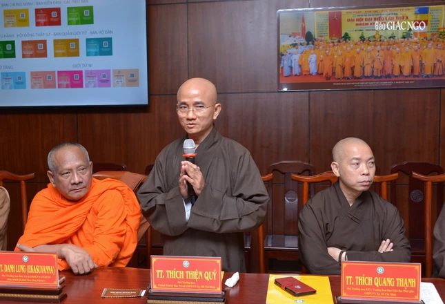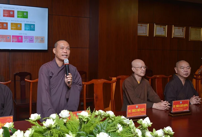 Tại buổi họp, với trách nhiệm được giao, Thượng tọa Thích Quang Thạnh, Phó ban Trị sự kiêm Trưởng ban Giáo dục Phật giáo TP.HCM, Phó Chủ đàn báo cáo công tác tổ chức và kết quả kỳ khảo hạch của giới tử Đại giới đàn Bửu Huệ.