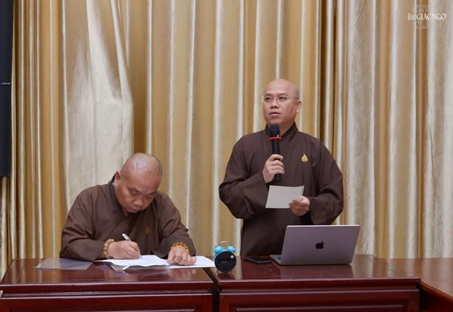 Thượng tọa Thích Quang Thạnh, Phó ban kiêm Trưởng ban Giáo dục Phật giáo TP.HCM phát biểu tri ân những chia sẻ của ông Vũ Huy Long trong Tuần huân tu và Khóa bồi dưỡng trụ trì năm 2024 |