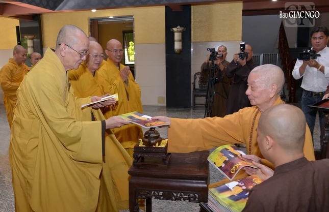 Đức Pháp chủ GHPGVN đã ghi nhận tấm lòng của chư tôn đức, đồng thời ngài cũng đã trao lộc cúng dường đến các phái đoàn.