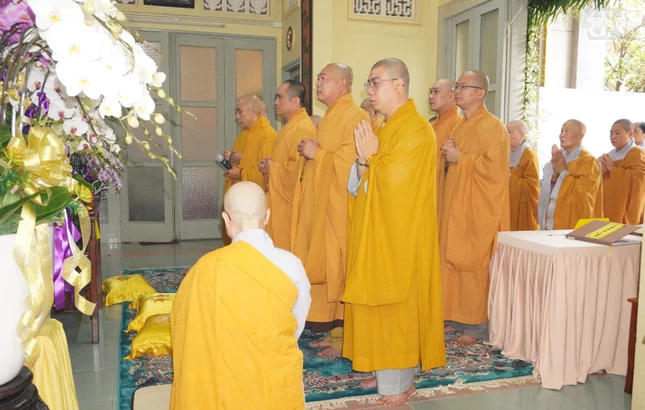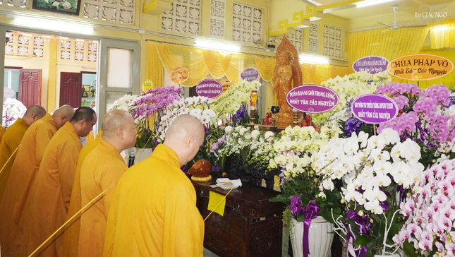 Đại diện Ban Tổ chức, Ni trưởng Thích nữ Như Thảo, Phó phân ban Ni giới T.Ư, Phó Trưởng Thường trực Phân ban Ni giới TP.HCM tri ân đến chư tôn đức Tăng Ni Ban Trị sự GHPGVN Q.10, Ban Thông tin - Truyền thông GHPGVN TP.HCM đã dành thời gian đến tưởng niệm Ni trưởng Thích nữ Như Ngọc.