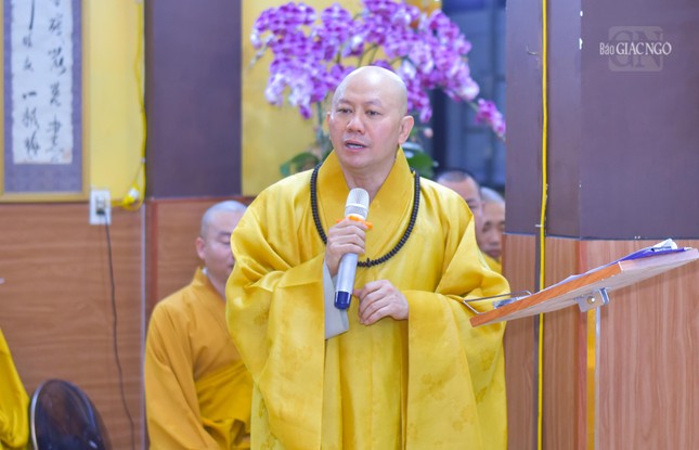 Buổi lễ khai giảng khóa An cư kiết hạ Phật lịch 2568 của Ban Trị sự GHPGVN Q.4 kết thúc sau lời phát biểu cảm tạ của Thượng tọa Thích Thị Trụ, Phó Thường trực Ban Trị sự.