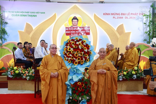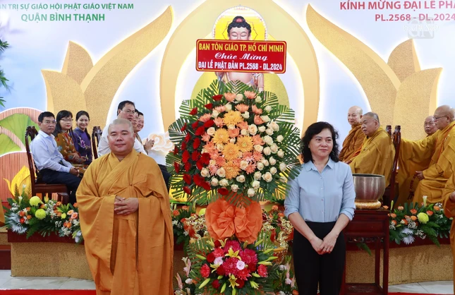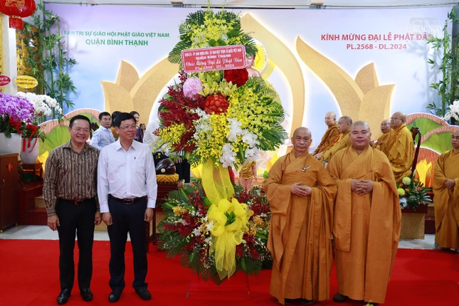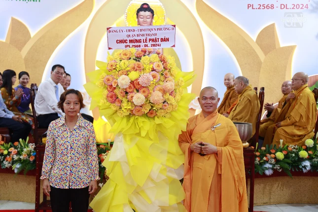 Tại buổi lễ, Chủ tịch Ủy ban MTTQVN Q.Bình Thạnh Nguyễn Thu Hương, đại diện chính quyền quận có lời chúc mừng đến toàn thể Tăng Ni, Phật tử tín đồ trên địa bàn và mong Ban Trị sự tiếp tục phát huy tinh thần hộ quốc an dân, chung tay cùng chính quyền, chăm lo đời sống cho người dân địa phương.