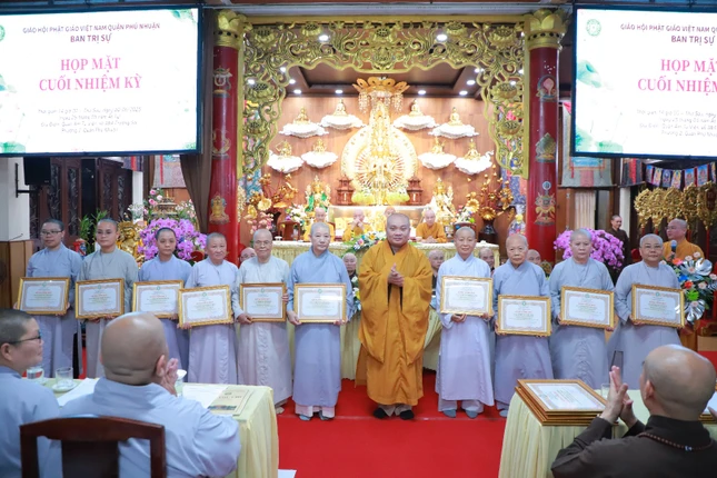 Dịp này, Ban Trị sự GHPGVN TP.HCM đã tặng Bằng tuyên dương công đức, Ủy ban MTTQVN TP.HCM tặng Bằng khen, UBND Q.Phú Nhuận tặng Giấy khen đến tập thể, cá nhân tại Q.Phú Nhuận có thành tích thực hiện tốt việc học tập và làm theo tư tưởng, đạo đức, phong cách Hồ Chí Minh cũng như hoàn thành xuất sắc công tác Phật sự, tham gia phong trào từ thiện xã hội, nhiệm kỳ 2021-2026.