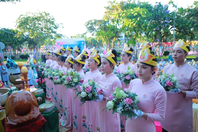 Sau nghi thức chào cờ, cử Quốc ca, Đạo ca, nhập từ bi quán và tiết mục múa dâng hoa cúng dường Phật đản của Phật tử đạo tràng Quan Âm tu viện, toàn thể đại chúng đồng lắng nghe Trưởng lão Hòa thượng Thích Như Niệm tuyên đọc Thông điệp Đại lễ Phật đản Phật lịch 2569 của Đức Pháp chủ GHPGVN gửi đến toàn thể Tăng Ni, Phật tử Việt Nam trong và ngoài nước.