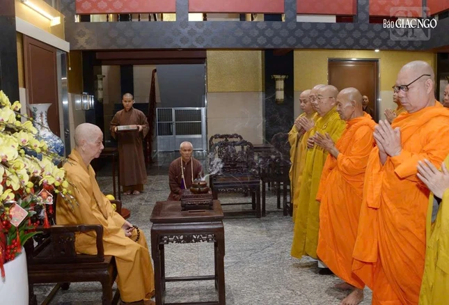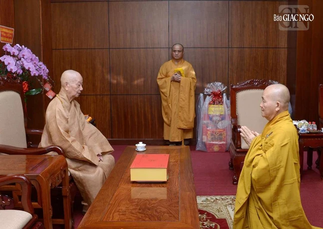 Trước đó, ngày 1-2, tại Việt Nam Quốc Tự, phái đoàn Ban Thường trực Ban Trị sự GHPGVN tỉnh Tây Ninh do Hòa thượng Thích Minh Thiện, Ủy viên Hội đồng Trị sự, cố vấn Ban Trị sự dẫn đầu đã khánh tuế, bạch trình lên Đức Pháp chủ về Phật sự của tỉnh nhà và định hướng phát triển sau khi sáp nhập 2 tỉnh Long An và Tây Ninh thành tỉnh Tây Ninh mới.