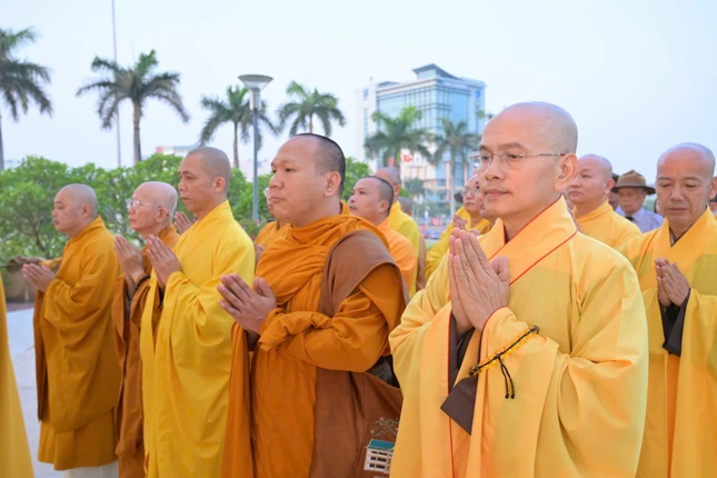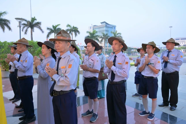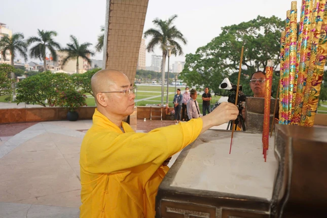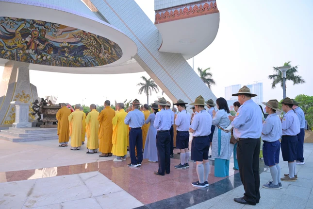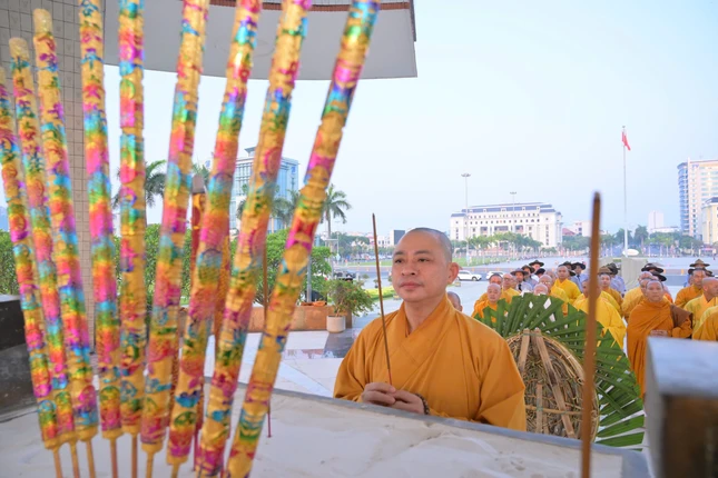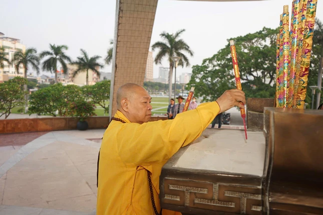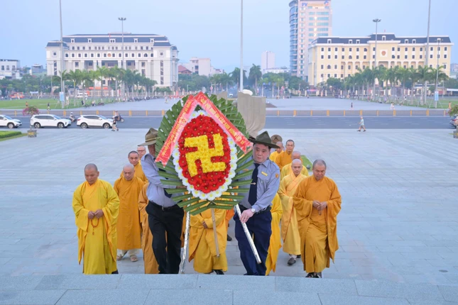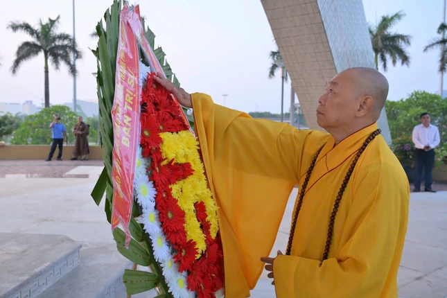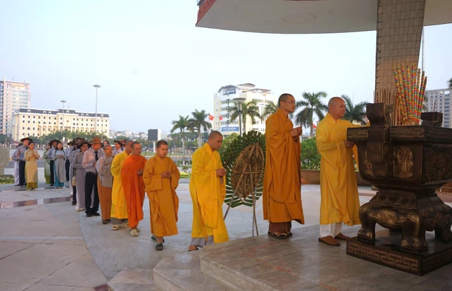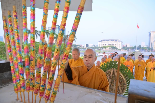 Trước Tượng đài 2/9 - nơi tri ân và vinh danh những anh hùng liệt sĩ của TP.Đà Nẵng đã hy sinh trong cuộc đấu tranh giành độc lập cho dân tộc, chư tôn đức dâng hương, đặt vòng hoa tưởng niệm các bậc tiền nhân đã vị quốc vong thân.