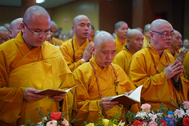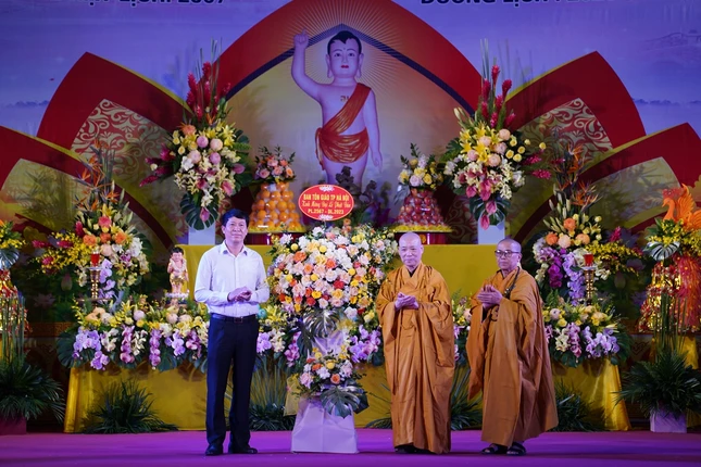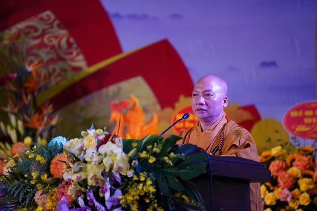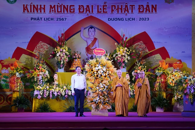 Trong không khí trang nghiêm, đại chúng đã thành kính lắng nghe Hòa thương Thích Thanh Nhiễu tuyên đọc bức Thông điệp Phật đản Phật lịch 2567 của Đức Pháp chủ GHPGVN gửi đến Tăng Ni, cư sĩ Phật tử ở trong và ngoài nước. Tiếp đó, Hòa thượng Thích Bảo Nghiêm đã tuyên đọc Diễn văn Phật đản Phật lịch 2567 của Hòa thượng Chủ tịch Hội đồng Trị sự.