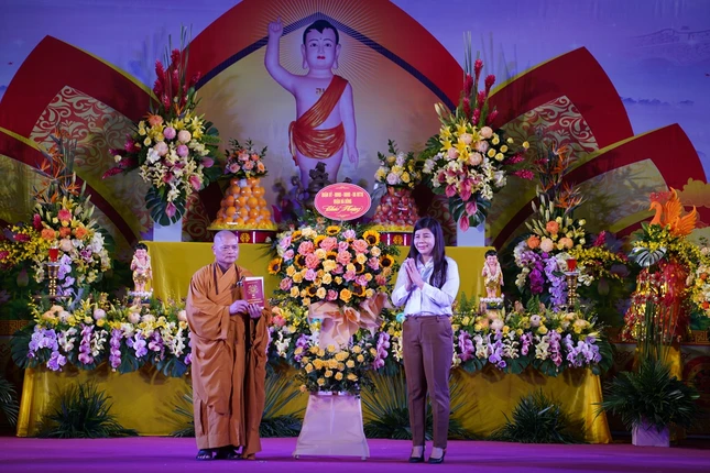 Tại buổi lễ, Ban Trị sự GHPGVN TP.Hà Nội cũng đã đón nhận những lẵng hoa chúc mừng của T.ƯGH, lãnh đạo chính quyền các cấp gửi đến chúc mừng Phật đản.