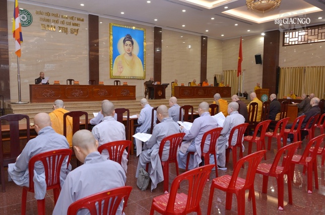 Hòa thượng Thích Lệ Trang, Trưởng ban Trị sự GHPGVN TP.HCM chủ trì buổi họp, cùng sự tham dự của chư tôn đức Ban Thường trực; Thường trực các ban chuyên môn trực thuộc, Phân ban Ni giới TP.HCM, Ban Trị sự TP.Thủ Đức, 21 quận huyện.