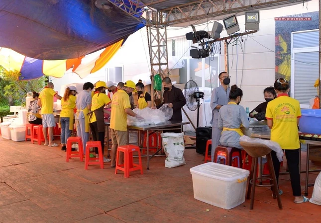 Ban TTXH Phật giáo TP.HCM đã tổ chức 3 bếp ăn thiện nguyện góp phần chăm sóc các bệnh viện dã chiến, trung tâm điều trị Covid-19 và lực lượng tuyến đầu tại chùa Vĩnh Nghiêm (Q.3), chùa Tường Nguyên (Q.4 và H.Nhà Bè), chùa Nam Thiên Nhất Trụ (TP.Thủ Đức), cung cấp hàng triệu bữa ăn đủ dinh dưỡng liên tục hơn ba tháng qua.