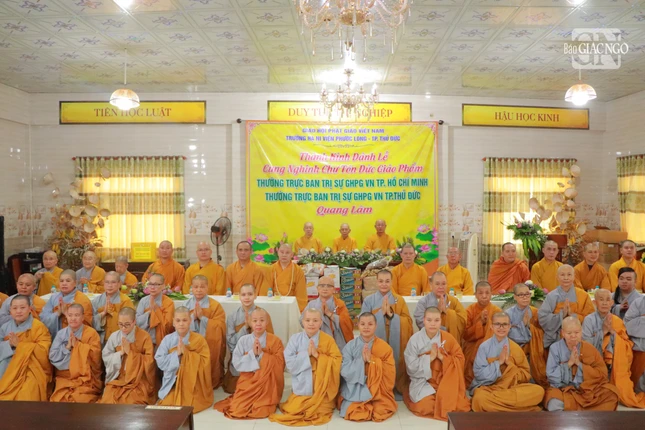 Chư tôn đức Thường trực Ban Trị sự GHPGVN TP.Thủ Đức có Hòa thượng Thích Thiện Minh, Trưởng ban Trị sự; Hòa thượng Thích Minh Truyền, Phó ban Trị sự kiêm Trưởng ban Pháp chế; Thượng tọa Thích Huệ Nghiêm, Chánh Thư ký Ban Trị sự cùng chư tôn đức Trưởng các ban trực thuộc Ban Trị sự TP.Thủ Đức.