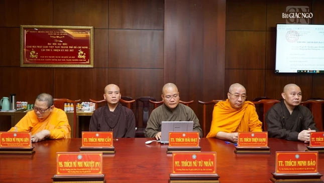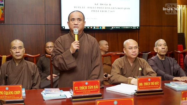 Buổi họp tập trung thảo luận và thống nhất các nội dung liên quan đến việc tổ chức Đại lễ Phật đản Phật lịch 2569 - Dương lịch 2025. Trong đó, nổi bật là công tác chuẩn bị cho các sự kiện quan trọng: Lễ cung rước kim thân Đức Phật sơ sinh, dự kiến vào tối mùng 8-4-Ất Tỵ, từ tổ đình Ấn Quang đến Việt Nam Quốc Tự sẽ được tổ chức trang nghiêm, với sự tham gia của đoàn xe hoa cung rước của các ban chuyên môn trực thuộc, Ban Trị sự TP.Thủ Đức, 21 quận huyện, cùng Tăng Ni và Phật tử.