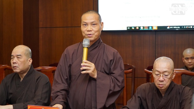 Thượng tọa Thích Đạt Đức, Phó Thường trực Ban Tăng sự TP.HCM đóng góp ý kiến liên quan công tác An cư kiết hạ |