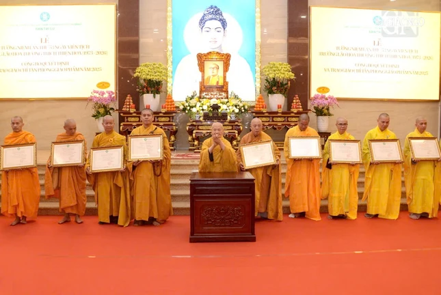 Hòa thượng Thích Huệ Thông, Phó Chủ tịch Hội đồng Trị sự, Trưởng ban Pháp chế T.Ư; Hòa thượng Thích Lệ Trang, Phó Chủ tịch Hội đồng Trị sự, Trưởng ban Trị sự GHPGVN TP.HCM; Thượng tọa Thích Phước Nguyên, Phó Tổng Thư ký Hội đồng Trị sự, Chánh Văn phòng II T.Ư; cùng chư tôn đức Ban Trị sự TP.HCM; 196 Tăng Ni các tự viện TP.HCM được tấn phong năm 2025.