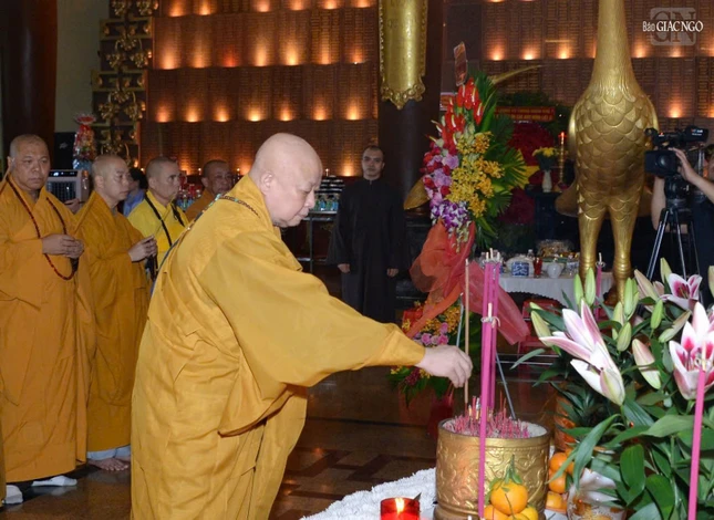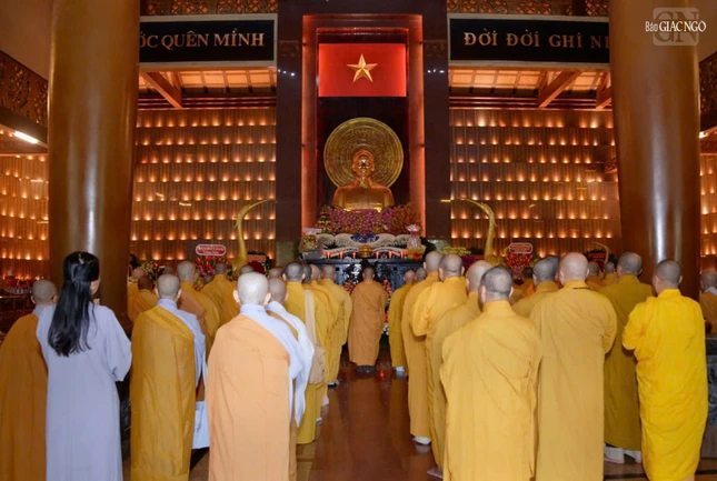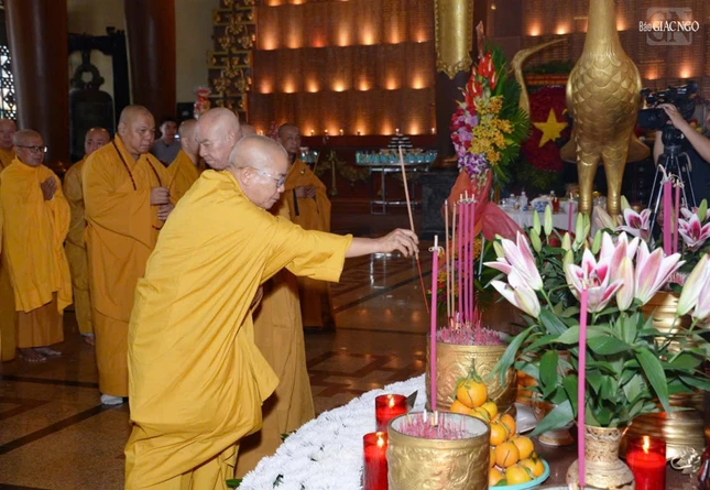 Trong không khí trang nghiêm, thành kính, Thượng tọa Thích Quảng Chơn, Phó Thường trực Ban Nghi lễ T.Ư, Trưởng ban Nghi lễ GHPGVN TP.HCM xướng lễ tưởng niệm; chư tôn giáo phẩm dâng hương, dâng hoa, đồng tụng thời kinh cầu nguyện anh linh các anh hùng liệt sĩ, chiến sĩ cách mạng và đồng bào yêu nước đã hy sinh trong qua các thời kỳ, để bảo vệ nền độc lập, tự do của đất nước như ngày hôm nay.