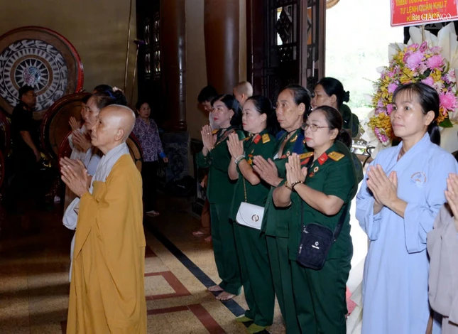 Trước đó, tại chùa Hội Khánh - P.Thủ Dầu Một, với sự chứng minh của Hòa thượng Thích Huệ Thông, Phó Chủ tịch Hội đồng Trị sự, Cố vấn Ban Trị sự GHPGVN TP.HCM, chư tôn đức và lãnh đạo địa phương đã trang nghiêm tham dự Lễ tưởng niệm các anh hùng, liệt sĩ, đồng bào hy sinh trong các cuộc kháng chiến vì độc lập dân tộc và hòa bình, thống nhất đất nước.