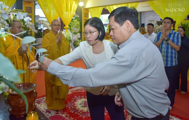 Theo đó, chư tôn đức Ban Nghi lễ T.Ư, Ban Thường trực Ban Trị sự TP.HCM, các ban trực thuộc GHPGVN TP.HCM, Ban Trị sự TP.Thủ Đức và các quận huyện, Ban Đại diện Phật giáo người Hoa TP.HCM, Tăng Ni các tự viện, Phân ban Ni giới TP.HCM do Hòa thượng Thích Lệ Trang, Trưởng ban Nghi lễ T.Ư, Trưởng ban Trị sự GHPGVN TP.HCM làm trưởng đoàn.