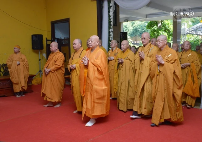 Trước Giác linh đường, chư tôn đức Tăng Ni các phái đoàn thành kính dâng hương tưởng niệm, tri ân công đức và đạo nghiệp của Trưởng lão Hòa thượng Thích Hiển Tu, bậc tòng lâm thạch trụ của GHPGVN cho đạo pháp và dân tộc. Thay mặt các phái đoàn, Trưởng lão Hòa thượng Thích Đức Nghiệp nguyện hương tưởng niệm người pháp lữ đồng hành, cầu nguyện Giác linh Trưởng lão Hòa thượng cao đăng thượng phẩm.