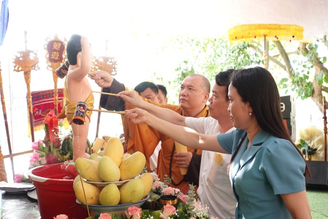 Sau đó, chư tôn giáo phẩm đã thành kính dâng hương, đồng tụng thời kinh Khánh đản và cử hành nghi thức Tắm Phật.