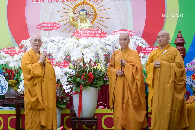 Buổi lễ có sự chứng minh của Trưởng lão Hòa thượng Thích Như Tín, Ủy viên Thường trực Hội đồng Chứng minh, Chứng minh Ban Trị sự Phật giáo Q.10; Thượng tọa Thích Thiện Quý, Phó ban kiêm Chánh Thư ký Ban Trị sự GHPGVN TP.HCM; chư tôn đức Ban Trị sự Phật giáo TP.HCM, Q.10, Q.3, Q.4, Q.6, Q.Tân Bình; đông đảo Tăng Ni, Phật tử các tự viện trên địa bàn.