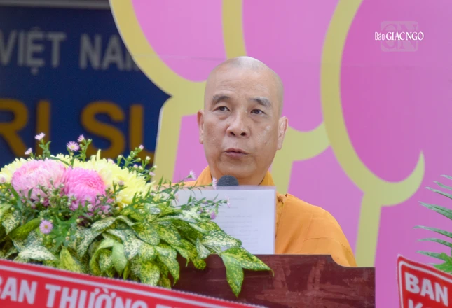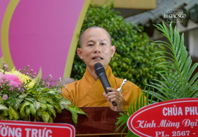 Tiếp đó, Thượng tọa Thích Nhật Thiện, Trưởng ban Trị sự GHPGVN Q.10 đọc Diễn văn Phật đản của Hòa thượng Chủ tịch Hội đồng Trị sự.