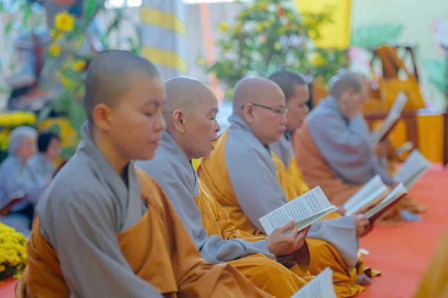 Trong không khí trang nghiêm, toàn thể đạo tràng đã nhất tâm trì tụng kinh Dược Sư, hồi hướng công đức, cùng nhau cầu nguyện cho quốc thái dân an, phong điều vũ thuận.