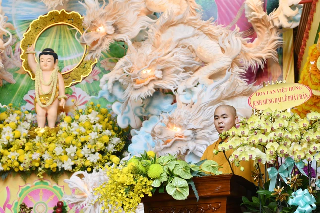Sau nghi thức chào Quốc kỳ, Đạo kỳ, nhập từ bi quán, toàn thể đại chúng lắng lòng nghe Trưởng lão Hòa thượng Thích Như Tín tuyên đọc Thông điệp Đại lễ Phật đản Phật lịch 2569 của Đức Pháp chủ GHPGVN. Tiếp đó, Hòa thượng Thích Thiện Nghĩa tuyên đọc Diễn văn Phật đản của Hòa thượng Chủ tịch Hội đồng Trị sự GHPGVN gửi đến toàn thể Tăng Ni, Phật tử.