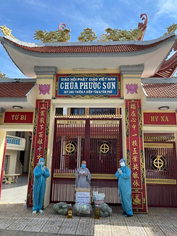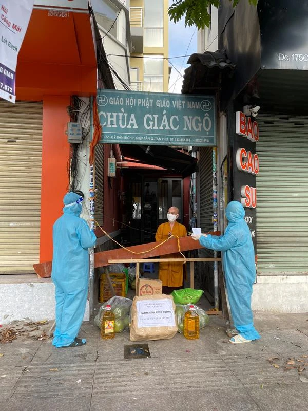 Được biết, trên địa bàn quận Tân Phú có 36 cơ sở tự viện, hơn 200 Tăng Ni đang tu học. Do tình hình dịch bệnh diễn biến phức tạp nên Ban Trị sự Phật giáo quận chỉ dâng cúng dường Tam bảo tại cổng tam quan của các tự viện.