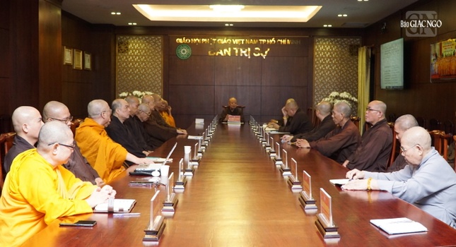 Hòa thượng Thích Lệ Trang, Trưởng ban Trị sự GHPGVN TP.HCM chủ trì buổi họp của Ban Thường trực.