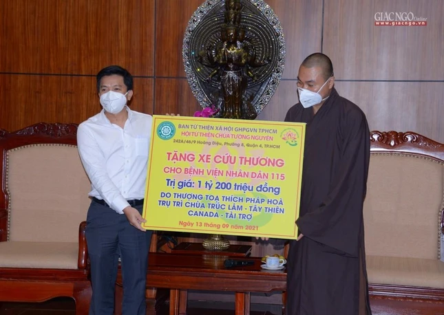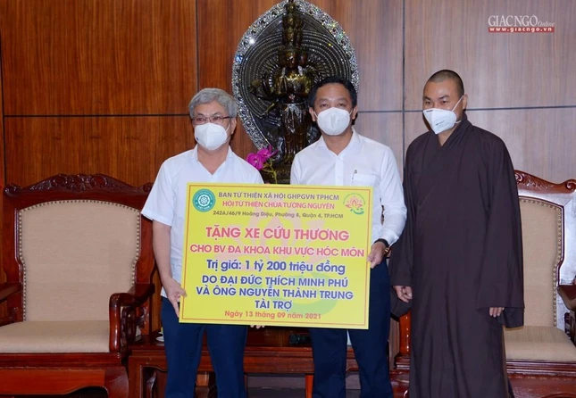 Phát biểu tại buổi lễ trao tặng, ông Tăng Chí Thượng, Giám đốc Sở Y tế TP.HCM cho biết TP đã và đang cố gắng hết khả năng nhằm từng bước nỗ lực kiểm soát dịch bệnh, đưa thành phố trở lại trạng thái bình thường. Trong quá trình đó, sự đồng hành, phối hợp và chia sẻ từ phía các tôn giáo, tổ chức xã hội, trong đó có Phật giáo là điều vô cùng cần thiết.