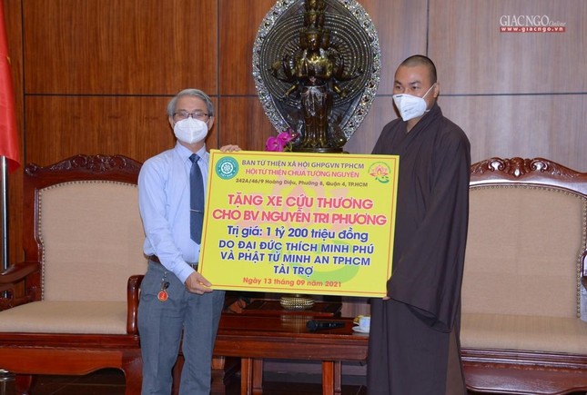 Lễ trao tặng được tổ chức tại Việt Nam Quốc Tự - quận 10, với sự tham dự của chư tôn đức đại diện Ban Trị sự Phật giáo TP gồm Thượng tọa Thích Thiện Quý, Phó ban kiêm Chánh Thư ký; Thượng tọa Thích Tâm Hải, Trưởng ban Thông tin - Truyền thông; Đại đức Thích Trung Nguyện, Phó Thư ký; Đại đức Thích Minh Phú, Phó ban kiêm Chánh Thư ký Ban Từ thiện xã hội Phật giáo TP.HCM.