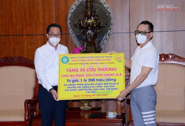 Theo đó, đợt trao tặng xe cứu thương lần này đến các bệnh viện là đợt thứ 2 do Ban Từ thiện - Xã hội Phật giáo TP và Hội từ thiện Tường Nguyên vận động các nhà hảo tâm hỗ trợ thực hiện gồm 10 xe với kinh phí 10,4 tỷ đồng. Trong đó có 2 xe của Bệnh viện Răng hàm mặt Trung ương và UBND Quận 10 do chương trình “Sài Gòn thương nhau” hỗ trợ.