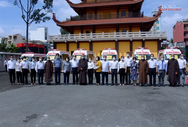 GNO - Sáng nay 13-9, Ban Trị sự GHPGVN TP.HCM tiếp tục tổ chức trao tặng đợt 2 xe cứu thương đến các bệnh viện trên địa bàn TP và tỉnh Bến Tre trong tổng số 18 xe cứu thương với tổng kinh phí 21,4 tỷ đồng.